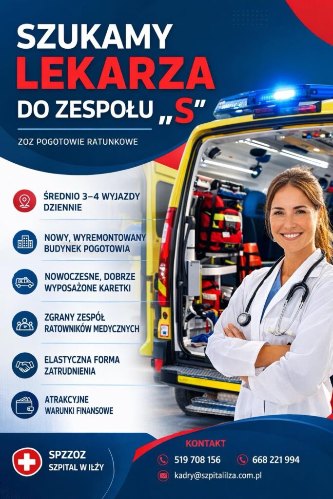 SPZZOZ Szpital w Iłży (woj. mazowieckie) zaprasza lekarzy do współpracy w ramach ZOZ Pogotowie Ratunkowe w Iłży, w zespole specjalistycznym „S”.